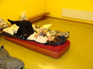 På fredagen så packade vi bilen och åte ner till Kristianstad för att vara med på ett läger med klubben. När vi kom till klubbstugan så hoppade tjejerna in i Anna Hagströms bil medan jag fick med mig Oscar Kjellsson, Anton Hagström, Lennart Bengtsson och Sven Axelsson. Vi körde ner till Härlöfs IF’s klubbstuga Bockatorpet. Eftersom ingen av oss skulle springa nattorientering så var vi först i stugan och bokade platser att ligga på.