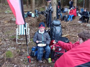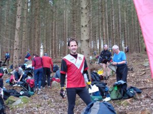 På lördags morgon så gick jag och Peter Badenfelt upp vid 06:30 och kokade kaffe samt började koka gröt innan vi väckte resten av gänget. Alla åt en rejäl grötfrukost innan vi satte oss i bilarna och körde mot tävlingen för dagen som var stafett tävling.