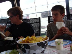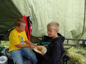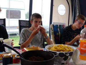 Vi sålde slut på den mesta maten så Mikael Blockgren fick åka till Falkenberg och köpa mer. När han kom tillbaka så gick vi upp till markan i skogen och grillade kycklingfile till klockan 12 på natten. Sedan var det dags att lägga sig.