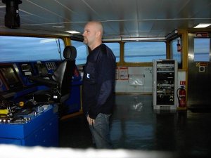 Sitter vakt lite medan överstyrman gör lite kontroller av utrustning ombord.
