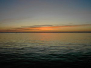 Vaknar och ser ut på ett spegelblankt hav och en klar himmel.