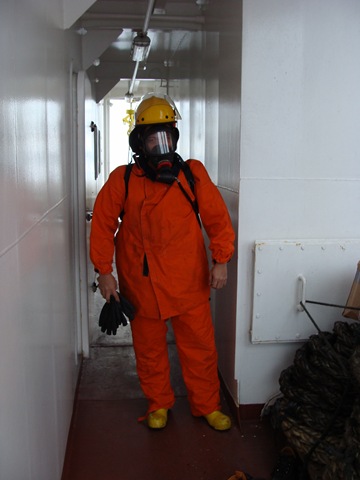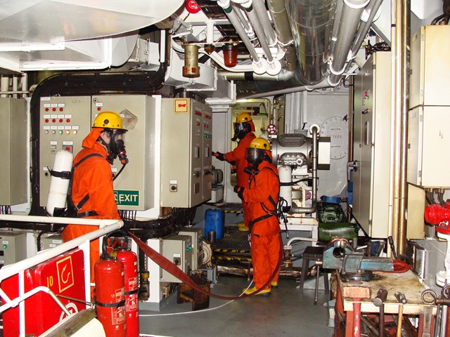 Efter kaffet på eftermiddagen så har vi en lite brandövning nere i maskin.
