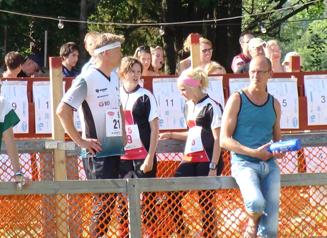 Jag ger mig ut på 20 och sista sträckan och nu är det 27 grader varmt igen. Hade ju hoppats på omstart men Albert sprang bra och växlade över till mig 4 minuter innan omstarten. Det var varmt och dammigt att springa men orienteringen gick jättebra och jag tillryggalade 9,7 km på 80 minuter. Hela klubben stod och hejade på mig vid målgången men det fanns ingen kraft kvar för en spurt. Pulsen var upp i 187 men jag kom inte förbi de andra killarna i klungan.