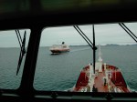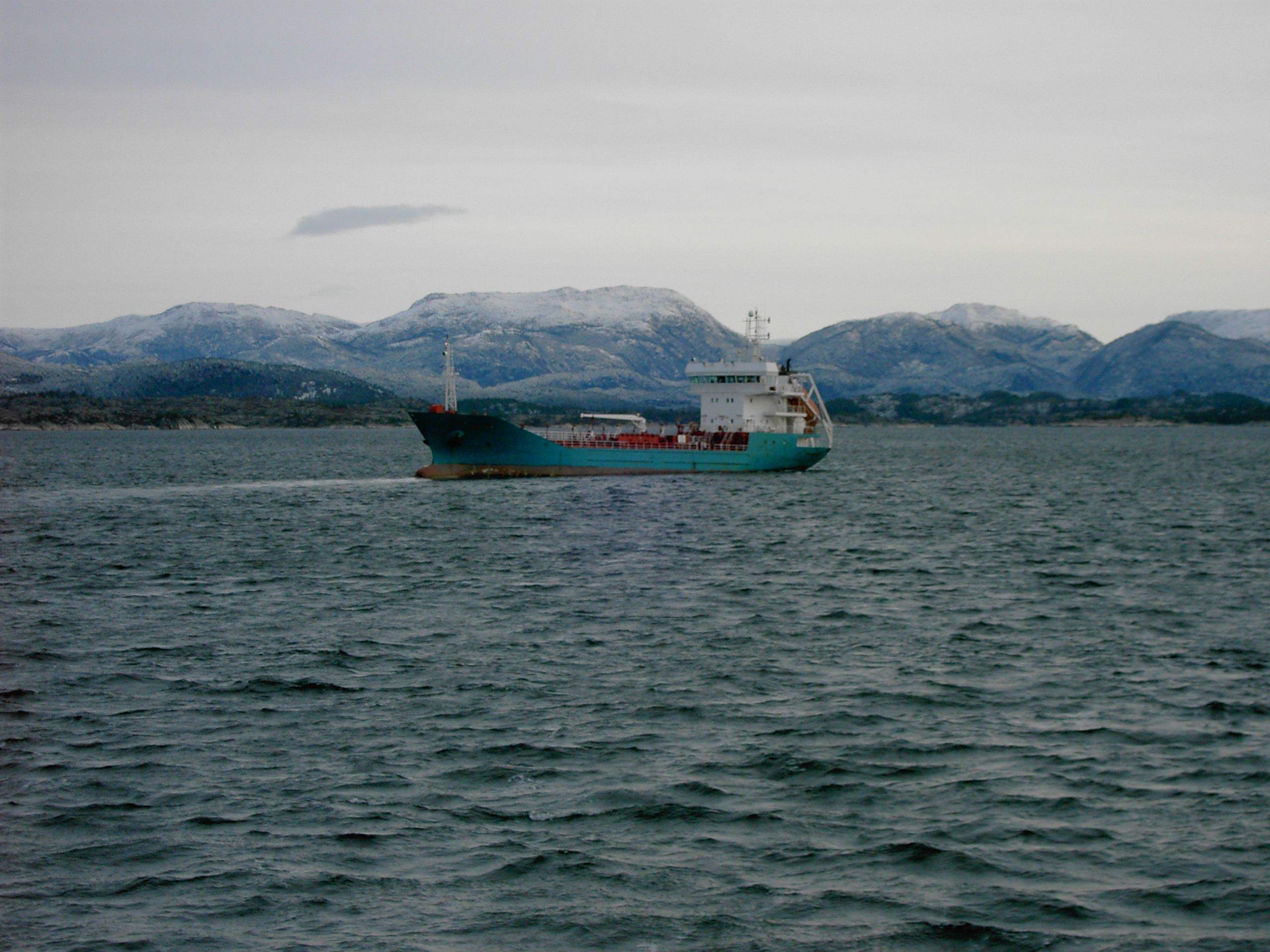 18:00 Kommer på vakt strax innan Gamla Lysböye innanför Stadt. Bergen Nordic har inte kommit ikapp oss utan ligger fortfarande 5,5 NM efter. När vi passerar Heröy så möter vi Bergen Viking som är på väg mot Mongstad igen för lastning.