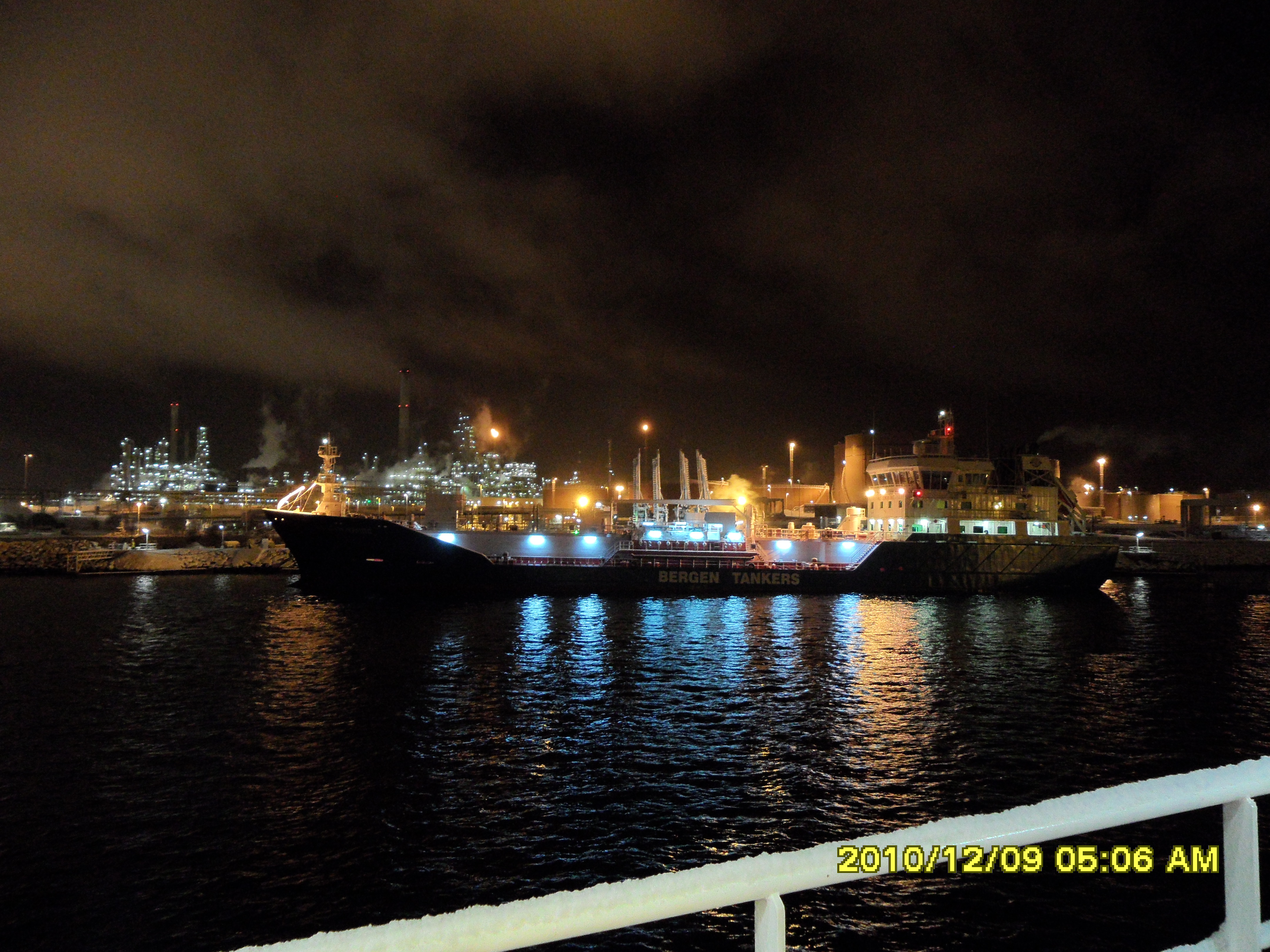 01:15 Förtöjda på kaj 8 för lastning, Bergen Viking ligger på kaj 3 och sedan går Sotraoil och därefter Bergen Star och till sist så ska Bergen Faith in där. Så Mongstad har detta dygnet haft besök av nästan samtliga båtar i rederiet.