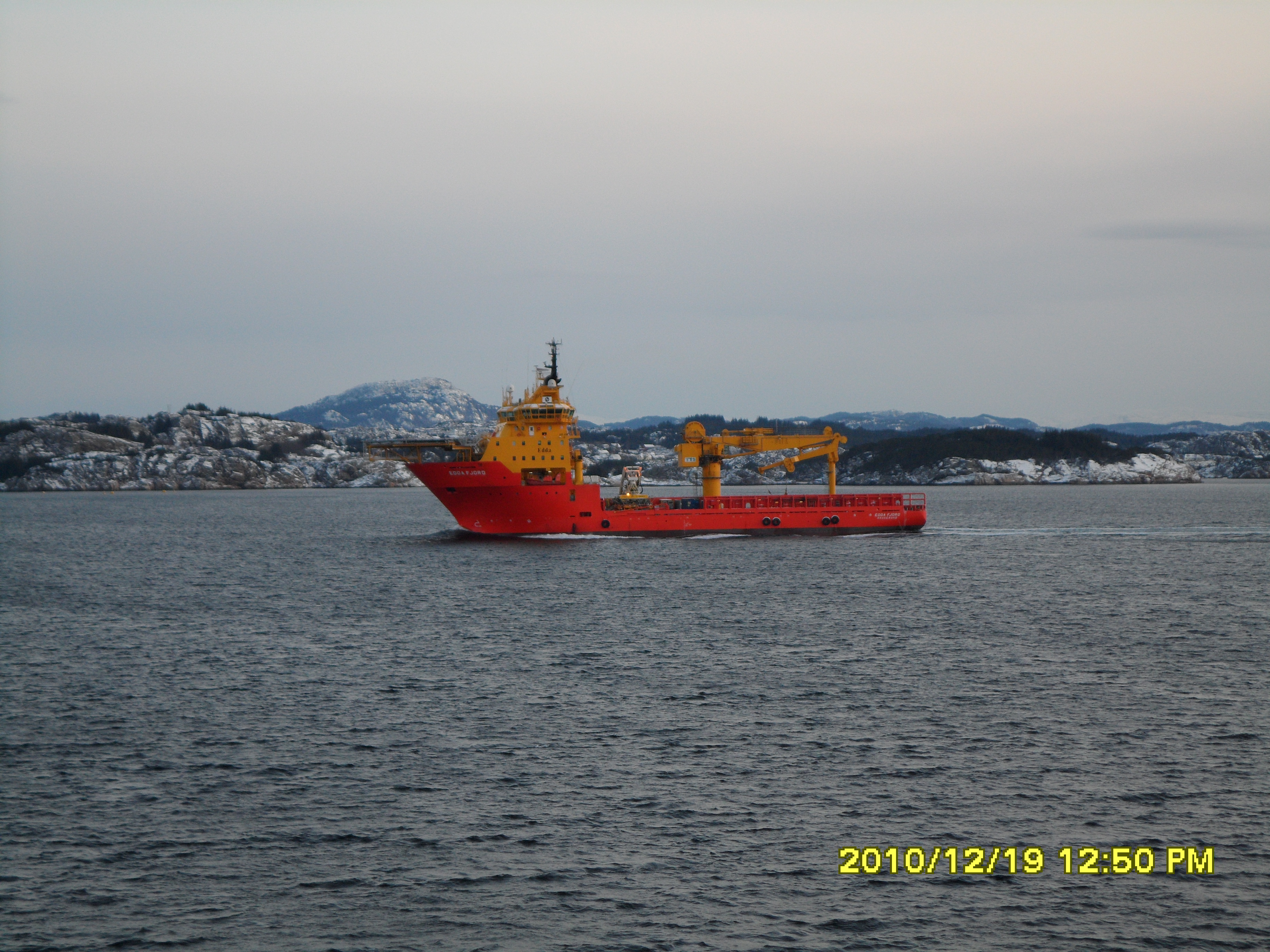 12:00 Kommer på vakt när vi passerar Gjona. Fortsätter söderut och när vi passerar Jektevik på Stord så sjösätter vi MOB-båten för att skicka hem elektrikern som ska hem och fira jul.