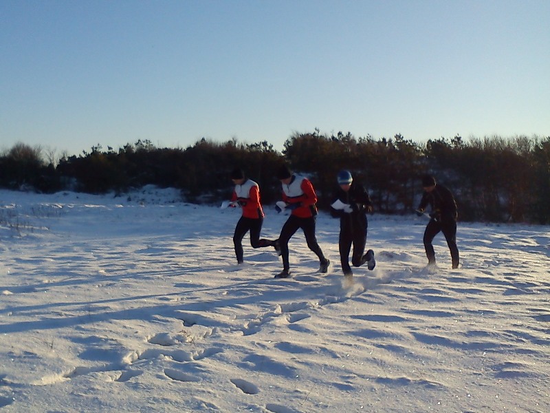 Det blev en form av tennis OL där vi skulle springa 7 stycken slingor med 4 kontroller på varje. Efter varje slinga så joggade vi gemensamt till en ny startpunkt och sen var det bara att ge järnet i snön.