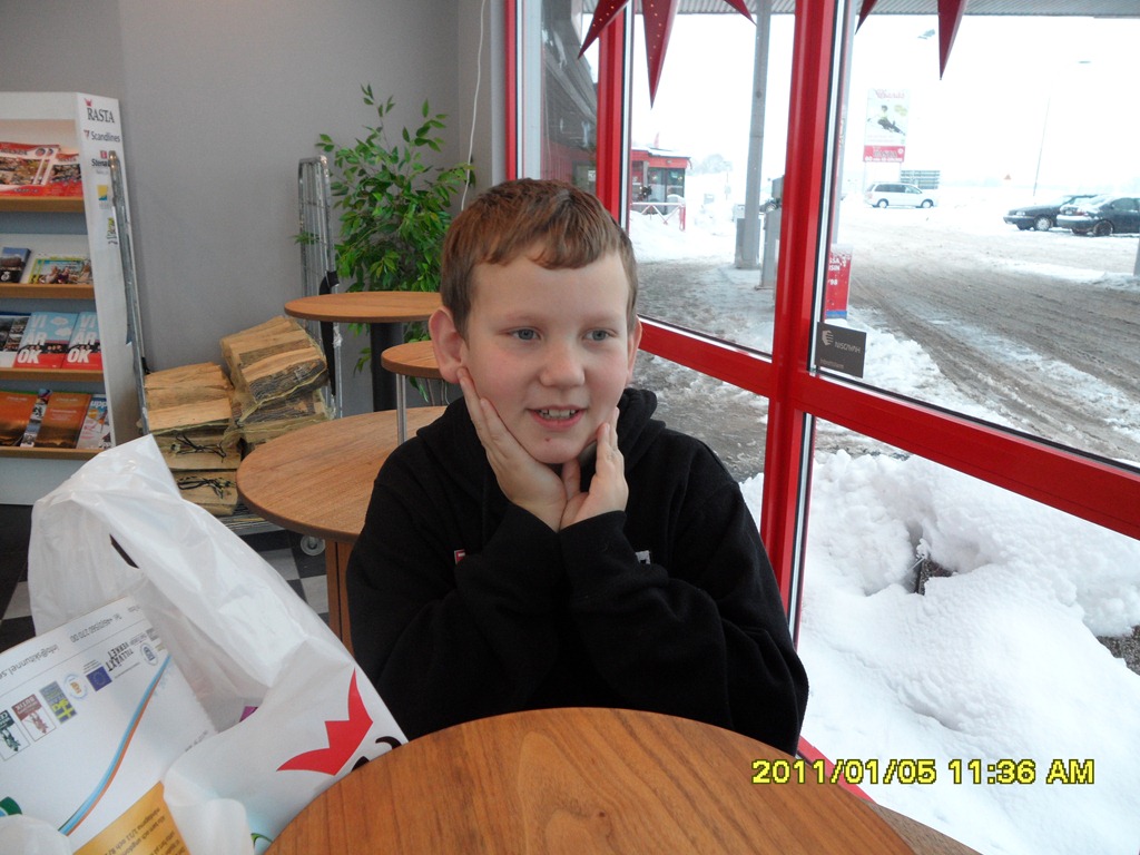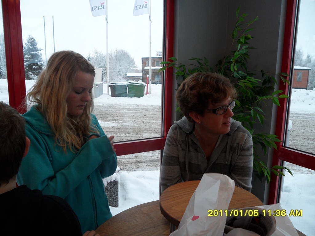 06:20 Åkte hemifrån i full snöstorm för att ta oss till Tvååker. När vi kom till Långavekaskolan fick vi vända pga all snö på vägen. Vi tog vägen in mot Falkenberg och sedan ut mot gamla E6’an. Sedan ut till motorvägen för att till slut komma fram till medborgarhuset i Tvååker där bussen till Orsa skulle gå.