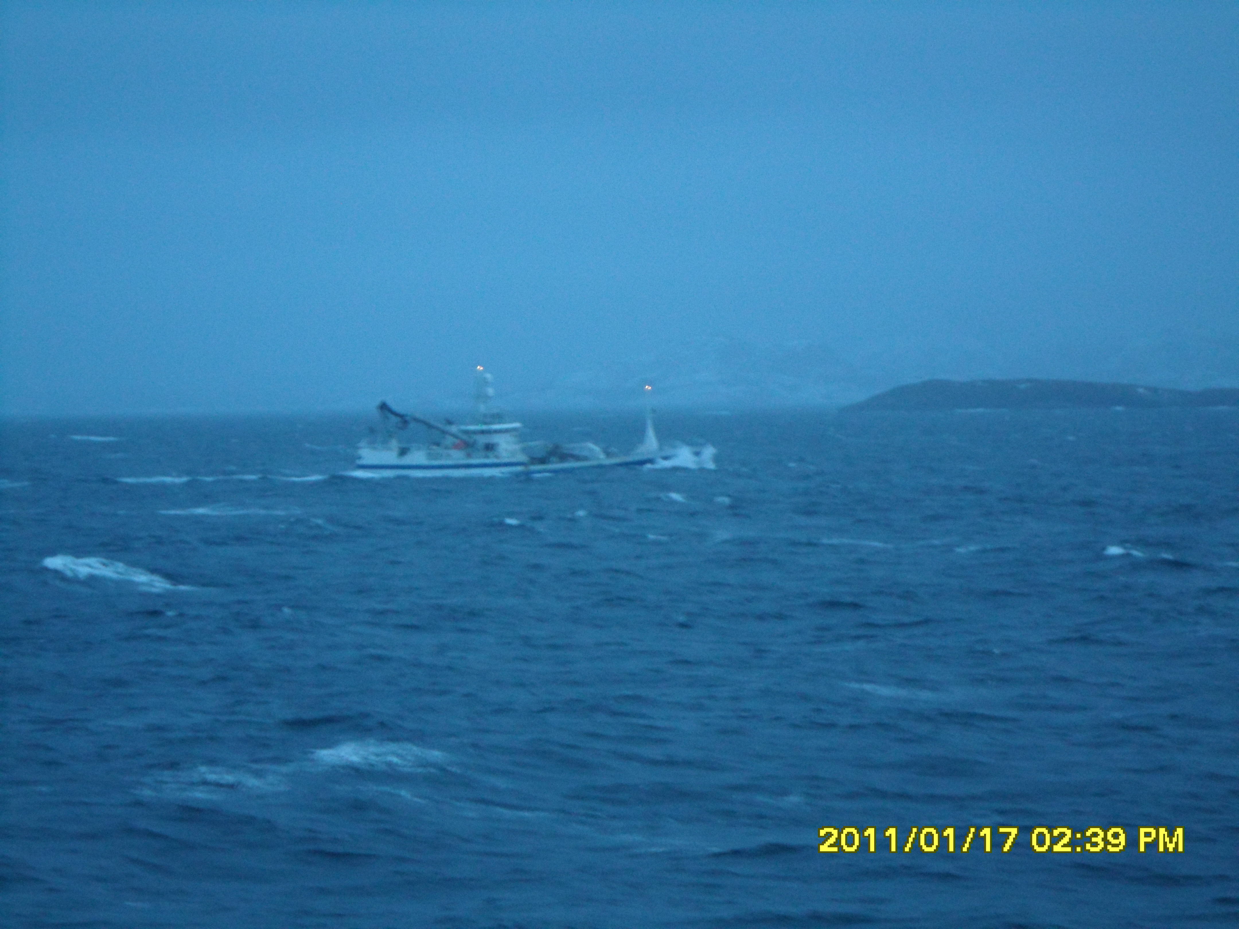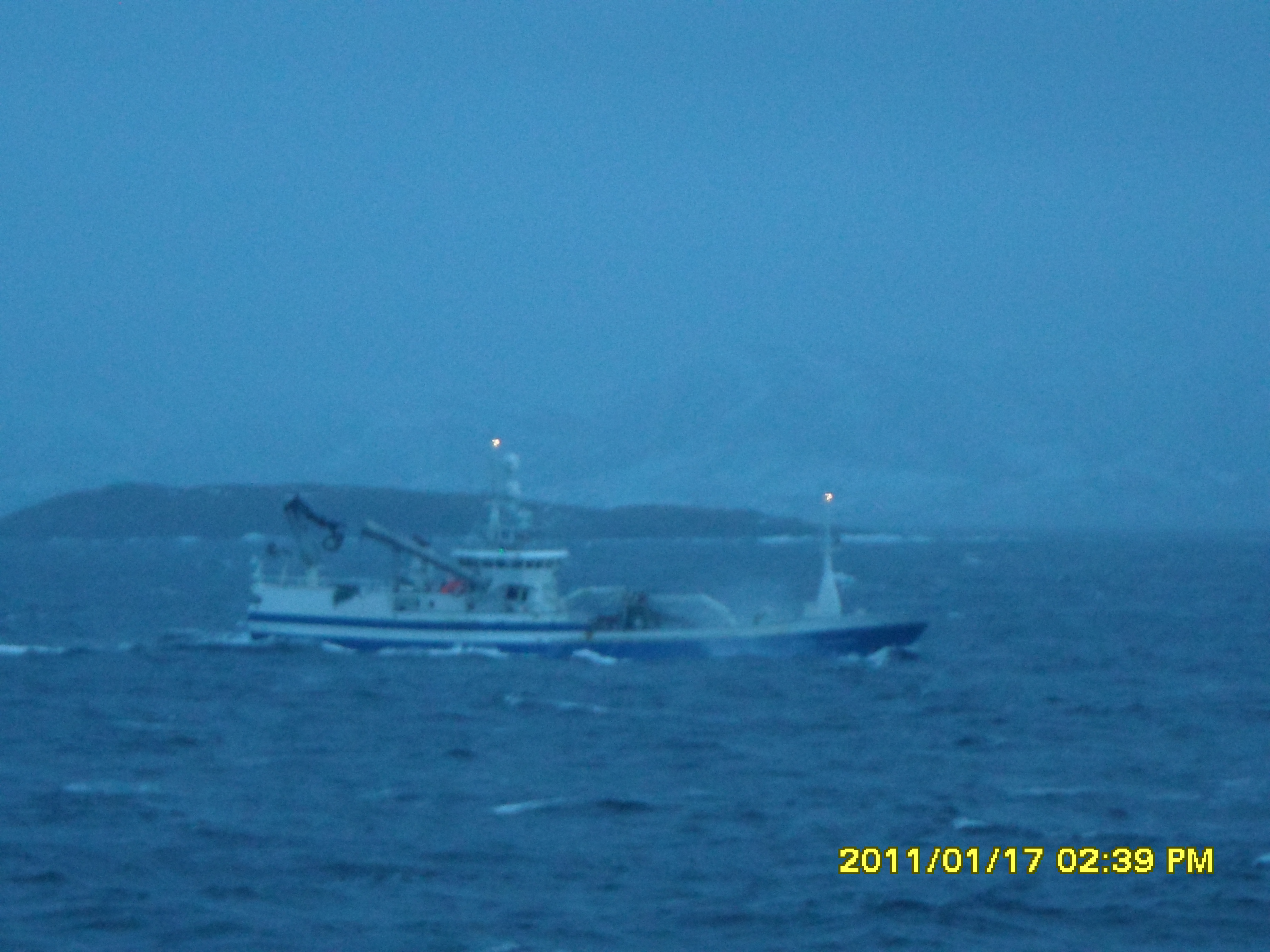 12:00 Kommer på vakt ute på Frohavet. Fortsätter upp över Folda och genom Rörvik.