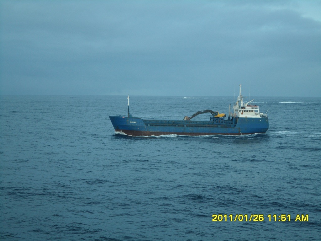 12:00 Kommer på vakt ute på Hustadvika och får besked att vi skall gå med reducerad fart eftersom Bergen Nordic skall in på Vestbase innan oss för lossning. Så jag fortsätter sakta in mot Trondheimsleia och vänder sedan för att gå tillbaka mot Kristiansund.
