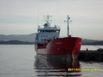 11:40 Förtöjda vid CCB på Ågotnes för bunkring och lossning. De har problem med ett nödstopp på anlägget så vi kommer inte igång med lossningen på flera timmar.