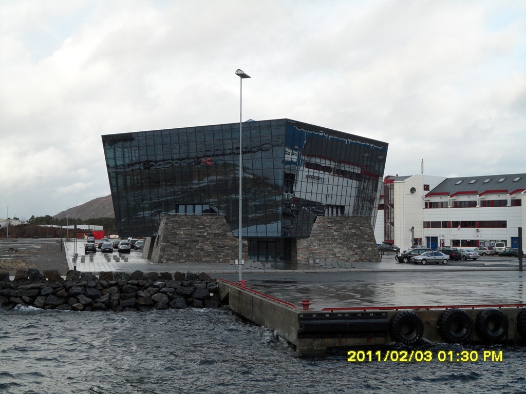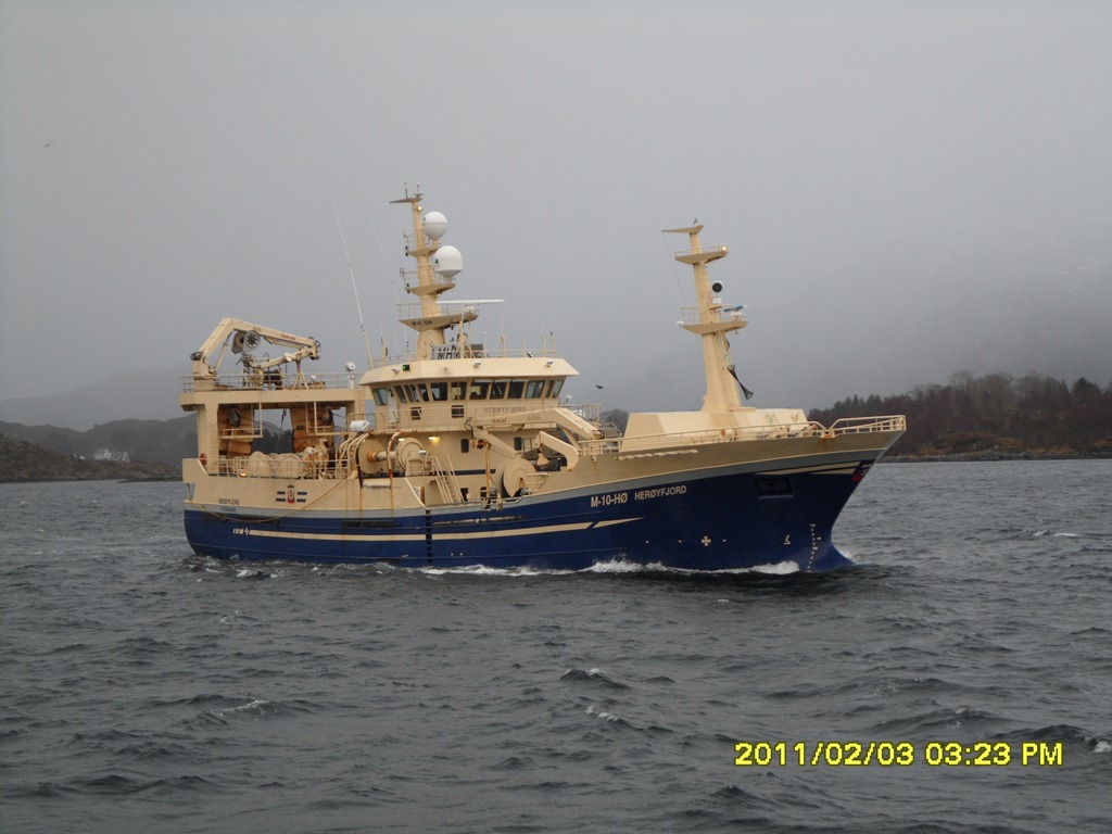 13:30 Förtöjda vid Eggesböneset på Heröy för lossning. Inget dåligt rederikontor som ligger vid kajen.