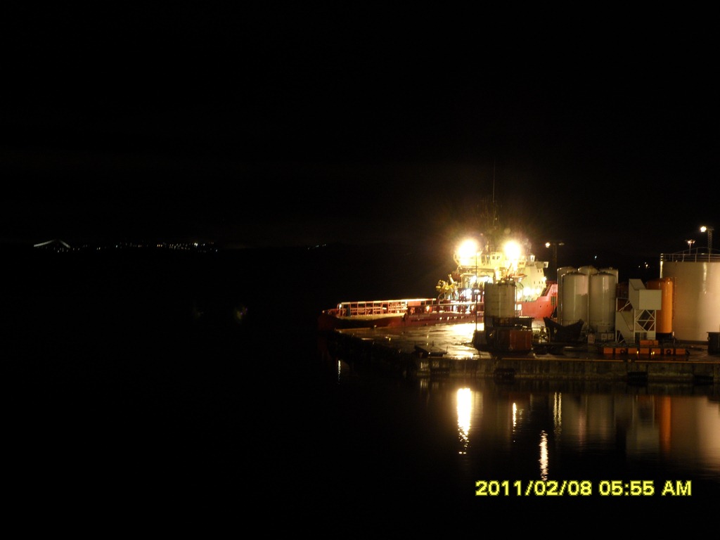 01:00 Förtöjda vid CCB på Ågotnes för lossning och bunkring.