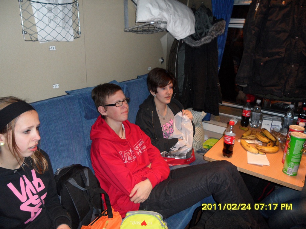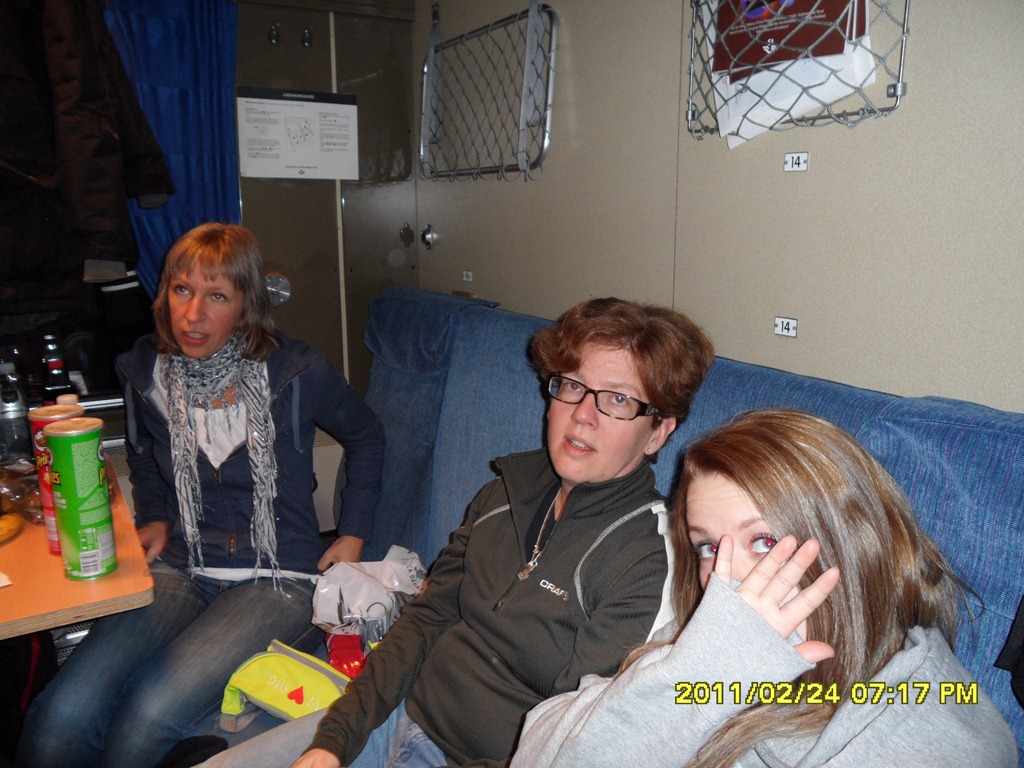 18:20 Vi kliver på nattåget till Mora ihop med Familjerna Hagström och Badenfelt. Övriga FOK’are är Anders och Mikael Karlsson samt Lennart Bengtsson och Kjell-Ove Arvidsson. Vi placerar oss i en kupe’ med killar och en med tjejer. Sedan är det dags att äta lite pastasallad och godis. Vi sitter och pratar och tar varsin öl medan vi har allmänt trevligt.
