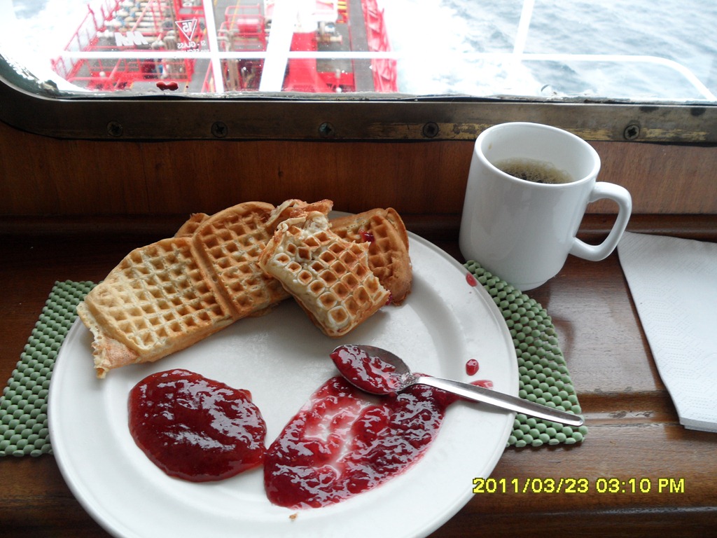 06:00 Går av vakten när vi passerat Kristiansund och är på väg in i Trondheimsleia.
