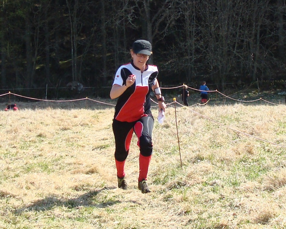 Britta sprang sin D35 Motion och hade bästa tider ända fram till 6:e kontrollen. Sedan gjorde hon en 6 minuters bom på 8:e kontrollen men ledde ändå. Men vid 10:e kontrollen så gjorde hon en 15 minuters bom och tappade ledningen. Hon sprang i mål på tiden 1:19:17 och var 9:46 efter segraren Anna Hagström. Hon tyckte som jag att banan var för enkel och att man tappade fokus när det blev så mycket stiglöpning.