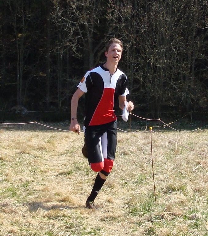 Jag följde Oscar till starten vilken låg 700m meter bort och uppför en väldig backe. Sedan var det dags för honom att ge sig ut på sin H10 bana. Han började med att bomma sin första kontroll och fick vända tillbaka igen. Där förlorade han 1 minut. Sedan sprang han på jättebra och låg på 2:a plats efter 10:e kontrollen. Sen gjorde han en jättemiss och lyckades inte plocka in det. Han sprang i mål på 42:30 och slutade på 5:e plats. Hade han inte gjort bommen på 11 kontrollen så hade han slutat som 2:a. Men han var nöjd ändå eftersom han var ende Hallänning och kammade därmed hem 12 poäng i framtidscupen och leder nu den med 13 poäng.