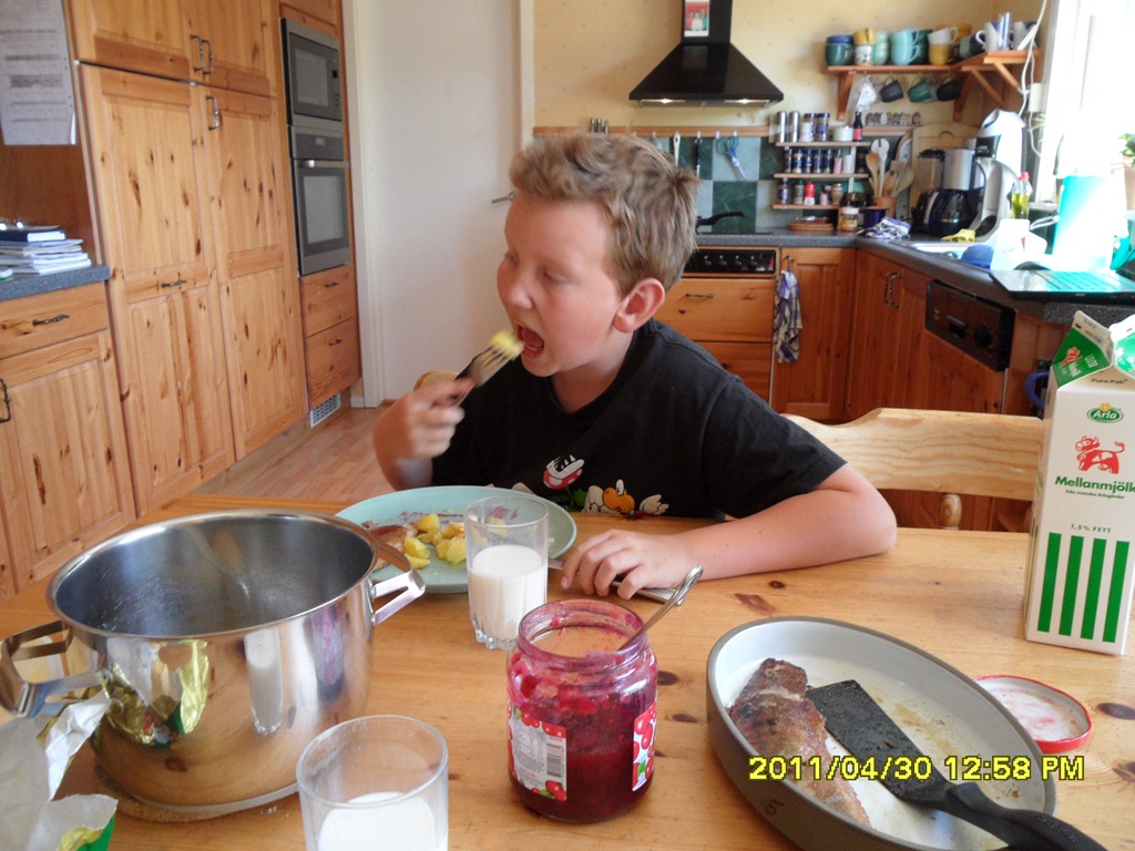 Efter detta så åkte vi hem och åt en riktig delikatess. Stekt saltsill med potatis och lingon. ![]()