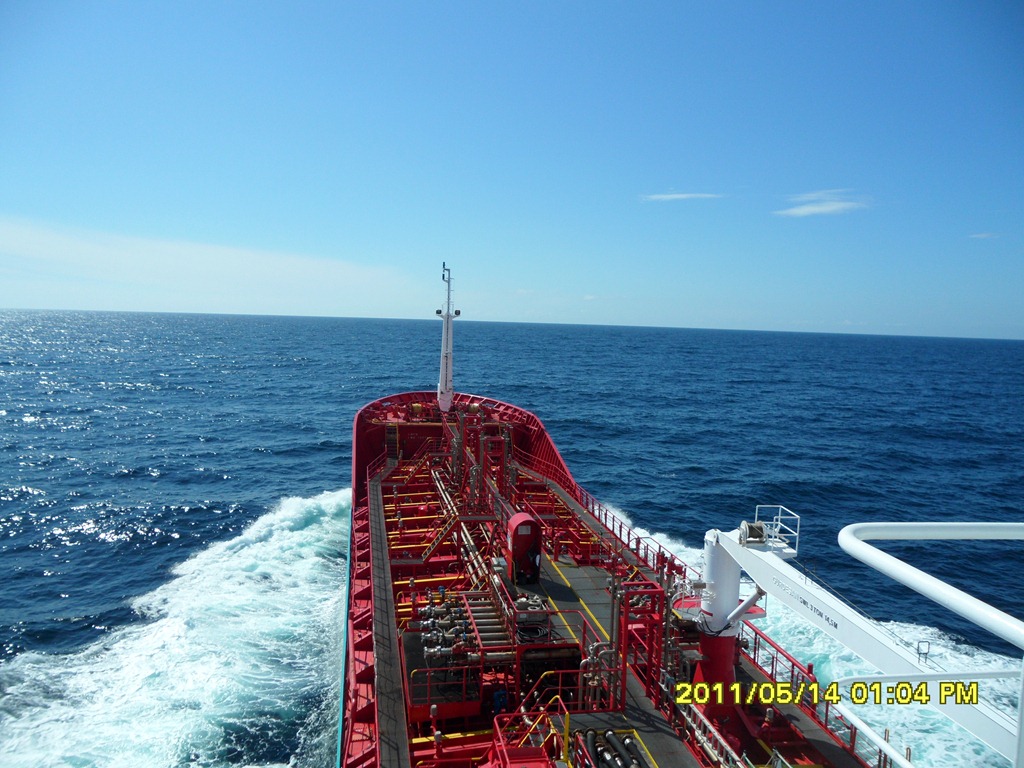 03:20 Färdig lossade och avgår. Vi fortsätter västerut över Hustadvika och väljer sedan att gå på yttersidan ner mot Mongstad i det fina vädret.