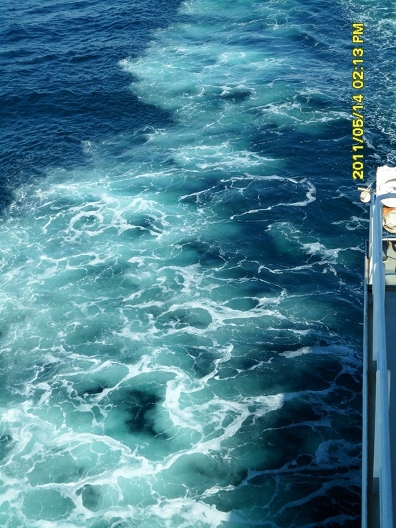 12:00 Upp på bryggan för att lösa av Ole. Vi har rundat Stadt och börjar nu gå söderut. Sydvästlig vind 2-5 m/s +15 grader och solsken