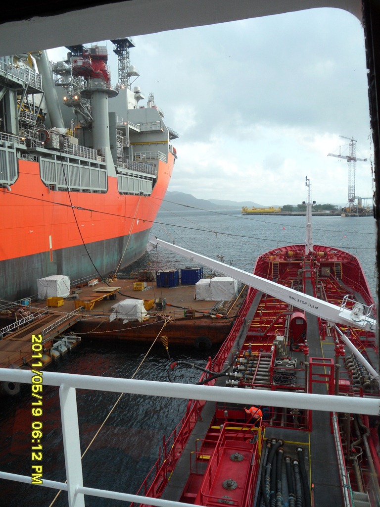 04:20 Färdiglossade med första partiet och väntar på att de skall koppla om där uppe. Sen har vi nog 16 timmars lossning till.