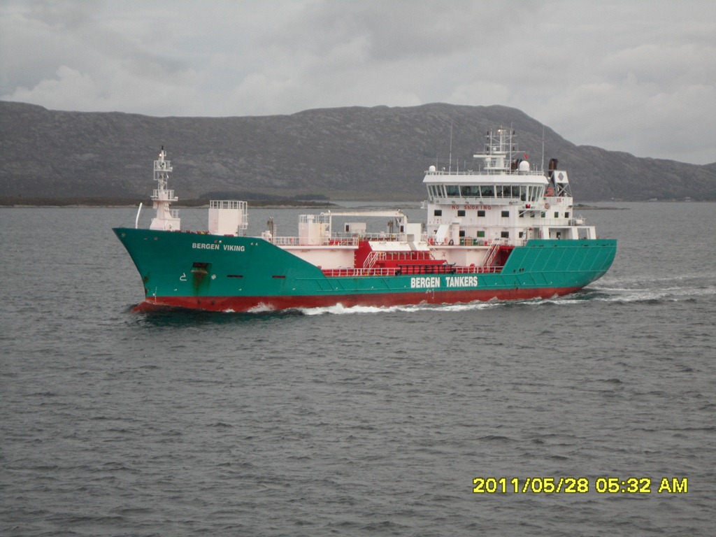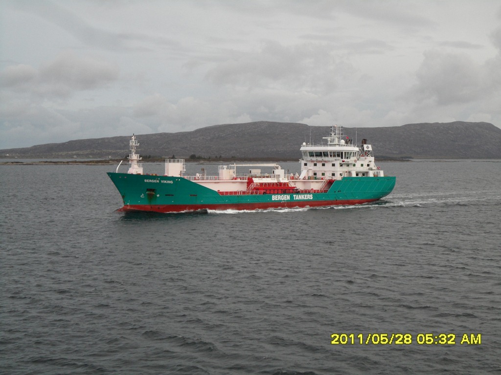 06:00 Går av vakten en stund efter vi mött Bergen Viking uppe i Fröysjöen.