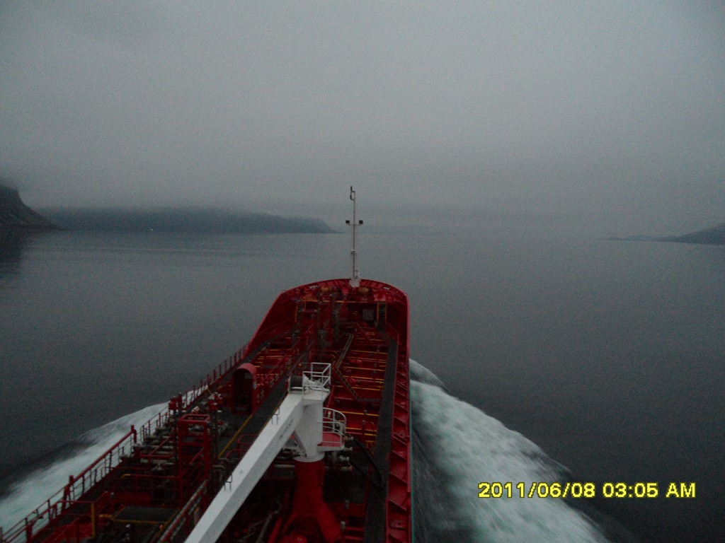 12:00 Lättat ankare på Fonnesflaket och går in mot kaj.