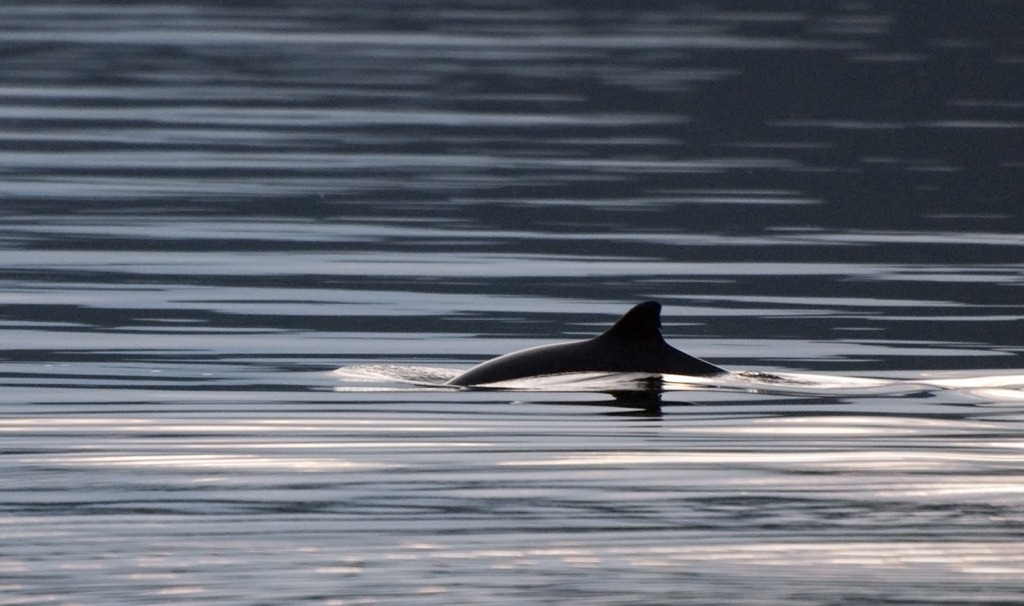 Sedan hade vi inte långt kvar till färjan mellan Brimnes och Bruravik. Fjorden låg alldeles spegelblank och vi såg tumlare som simmade precis utanför färjeläget.