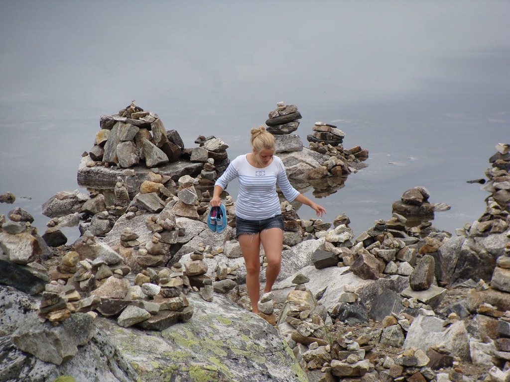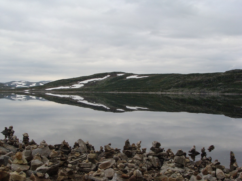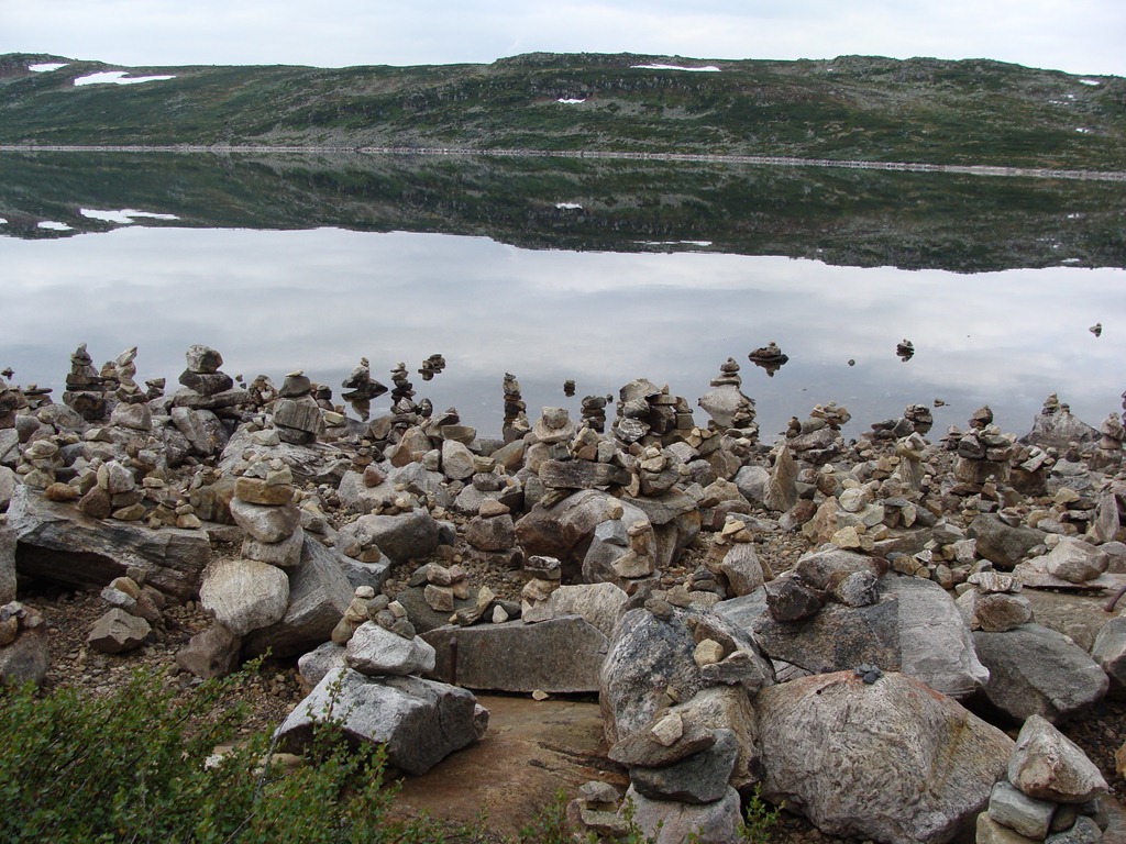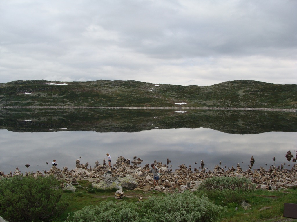 Efter detta stoppet så körde vi ytterligare en bit innan vi kom fram till en sjö där folk hade staplat stenar längs hela sjöstranden.