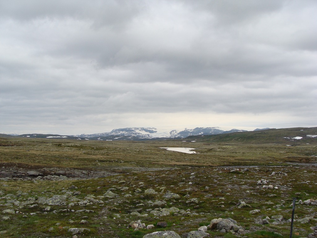 Vi fortsatte västerut över Hardangervidda och såg Hardangerjökulen.