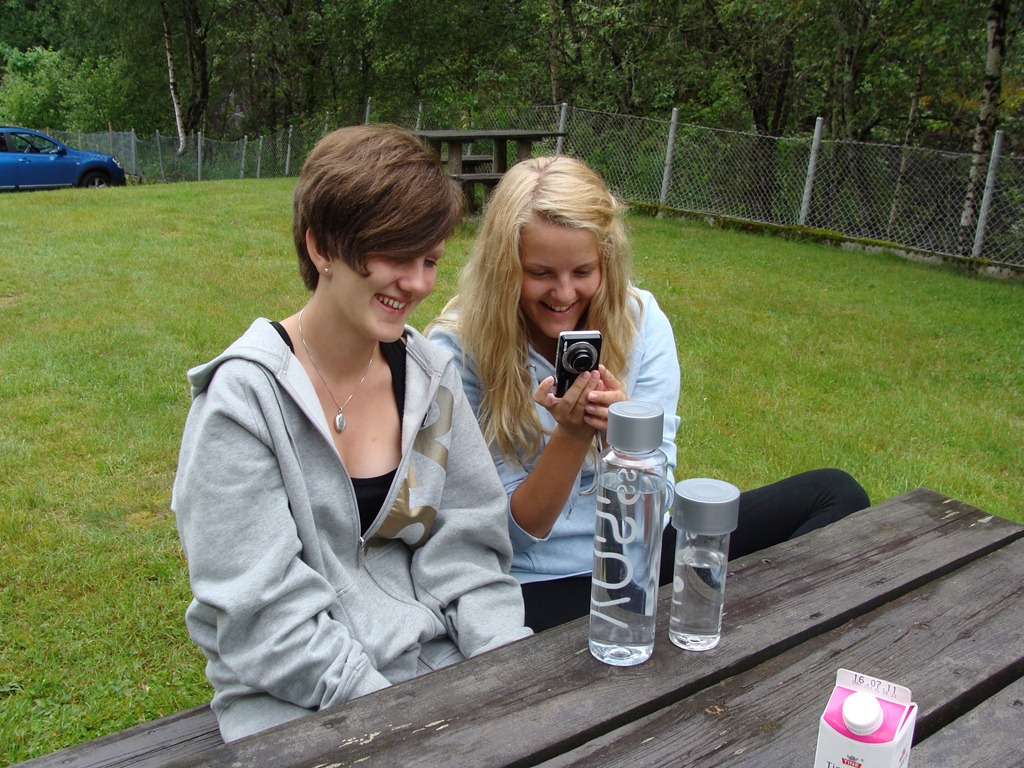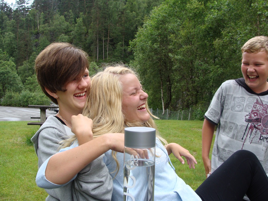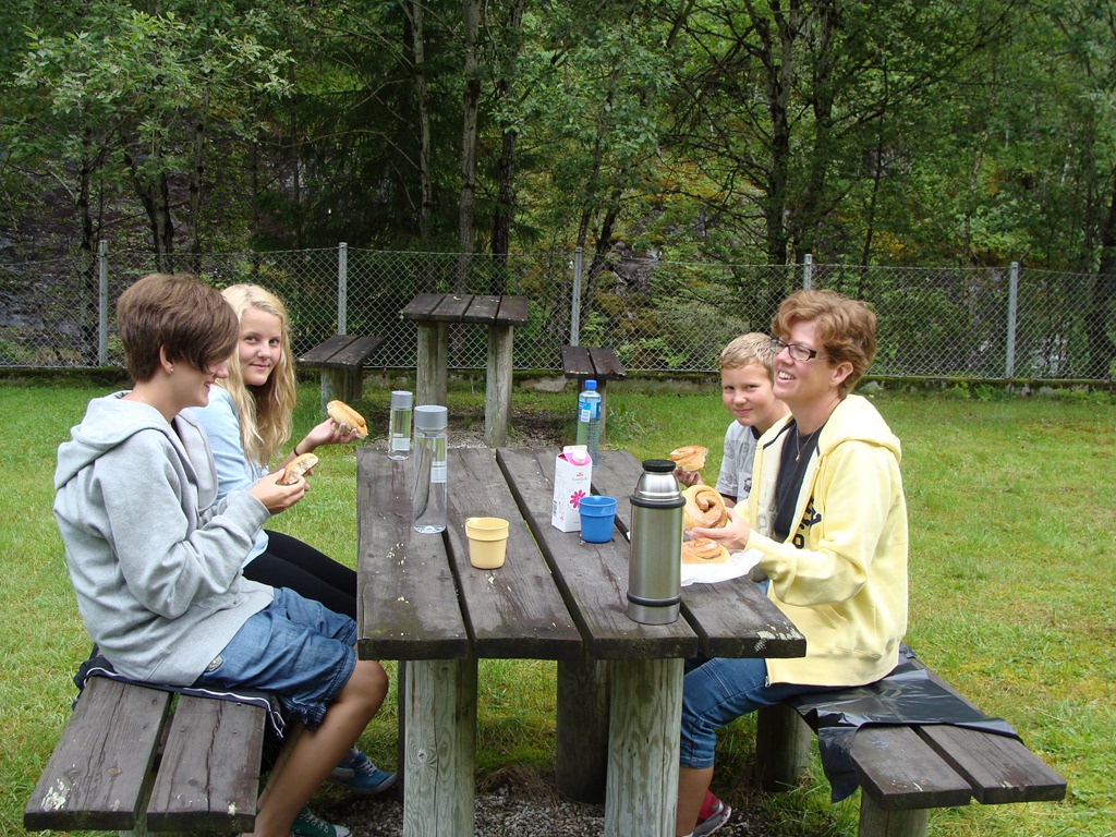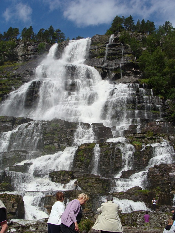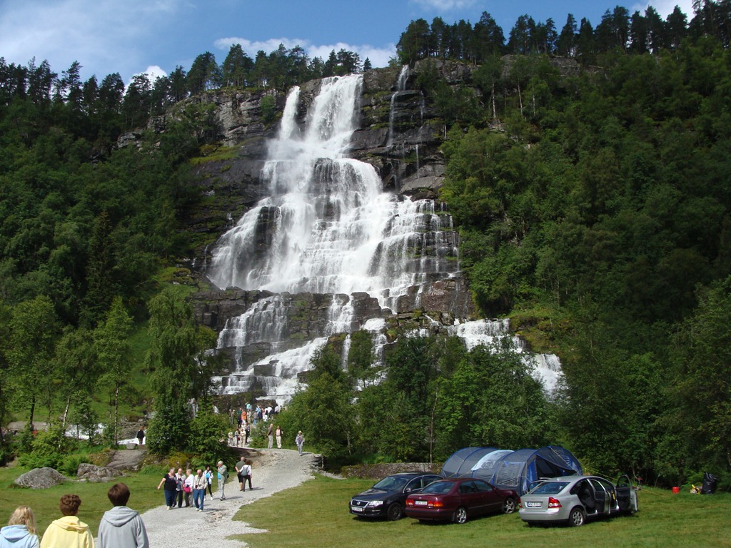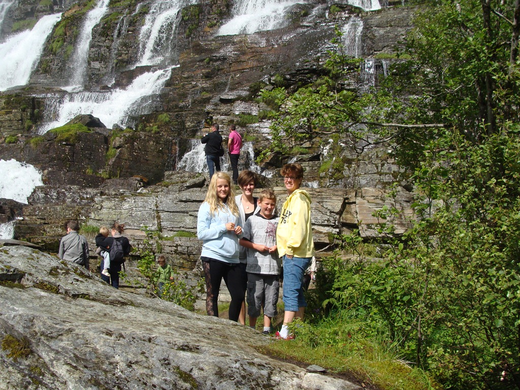 09:00 Hela familjen inpackad i bilen och vi börjar hemfärden. Vi stannar inte innan efter Voss när vi ser vattenfallet Tvindefossen.