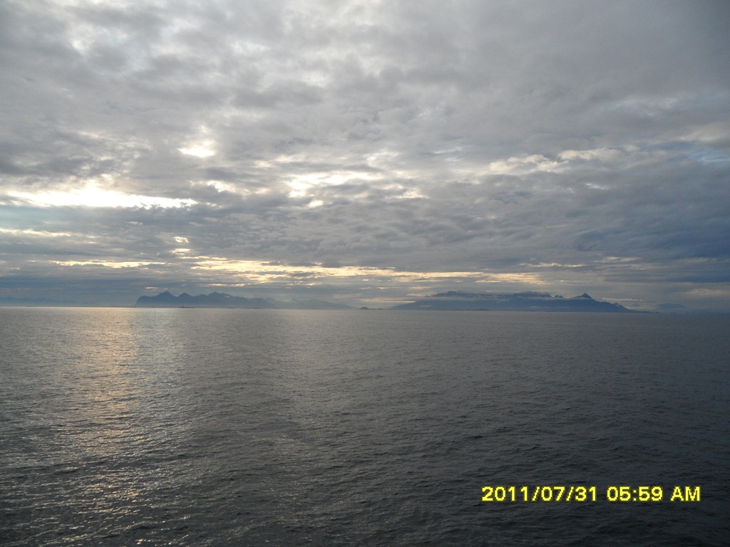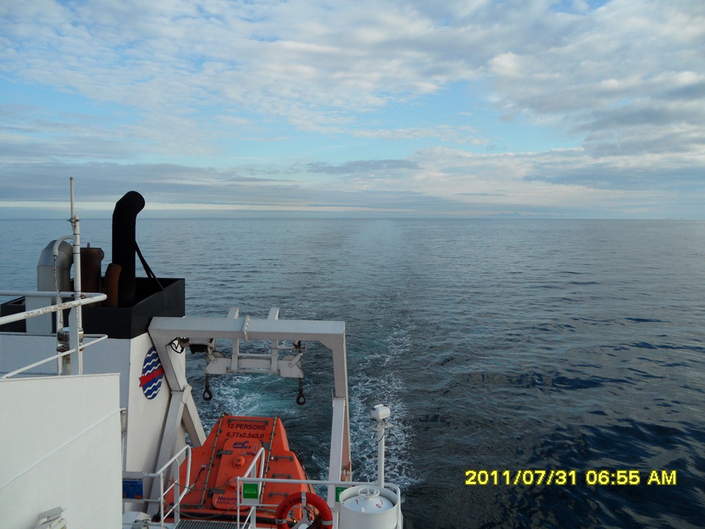 08:00 Går av vakten när vi passerar Landego och känner lukten av stekt ägg och bacon från byssan. ![]()