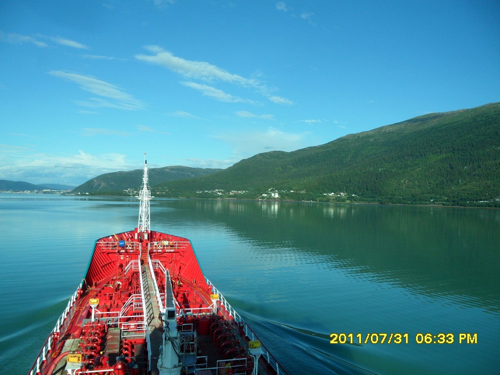 19:00 Förtöjda på Hauknes i Mo i Rana för att lossa.