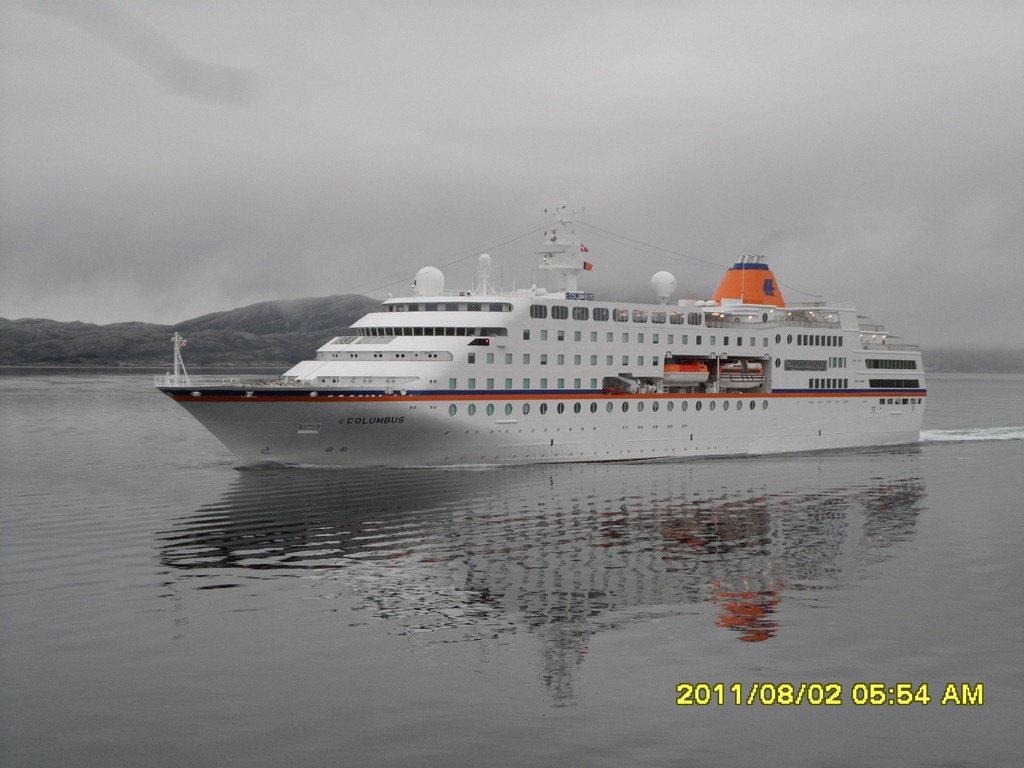 02:00 Kommer på vakt norr om Brönnöysund, havet ligger platt som en spegel. Fortsätter norrut förbi Tjötta och Sandnessjöen. Möter lite fina båtar under morgonen.