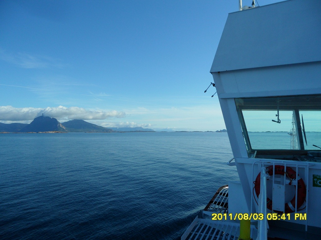 14:00 Kommer på vakt när vi passerar Lødingen och går ut på Vestfjorden. Även idag så kan vi njuta av fint väder medan jag sitter och äter våfflor och dricker kaffe.