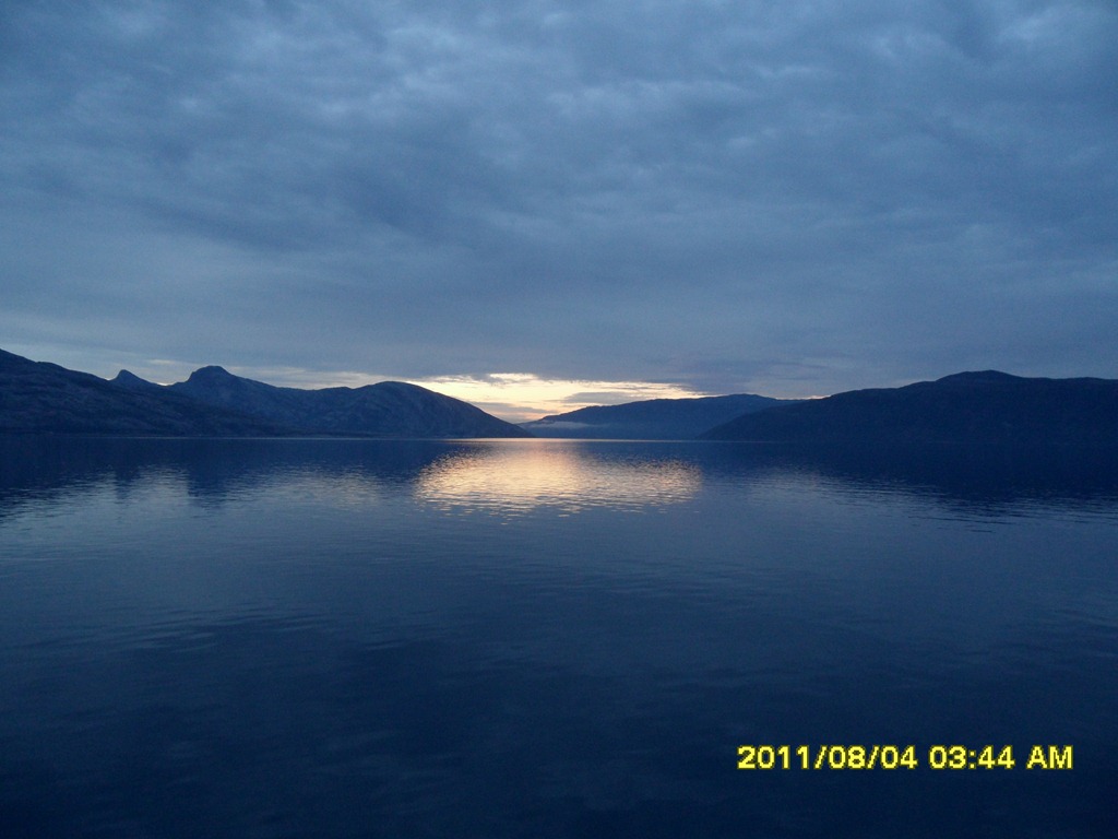 02:00 Kommer på vakt en bit norr om polcirkeln och fortsätter söderut. Stilla blek och en fin morgon.