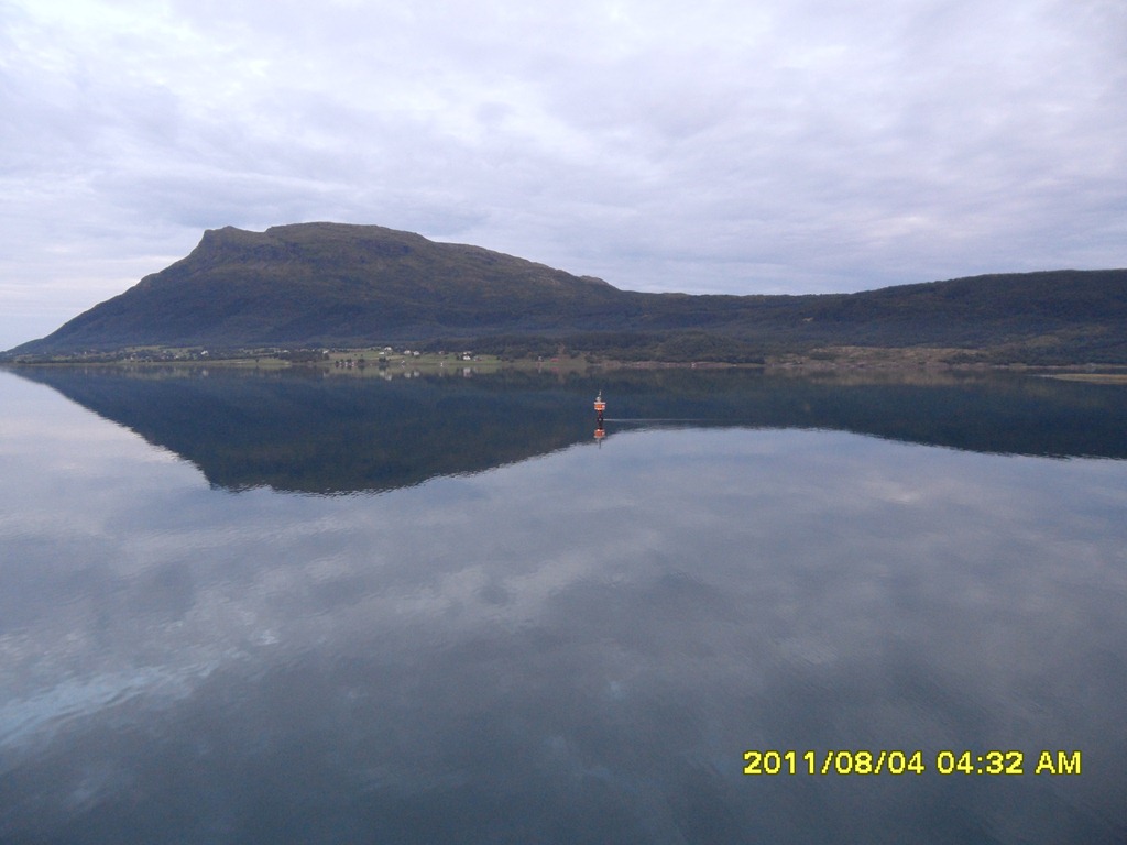 14:00 Löser av Per på bryggan efter att ha ätit lite saltkött. Fortsätter ut genom Ranafjorden och sedan söderut förbi Sandnessjöen.