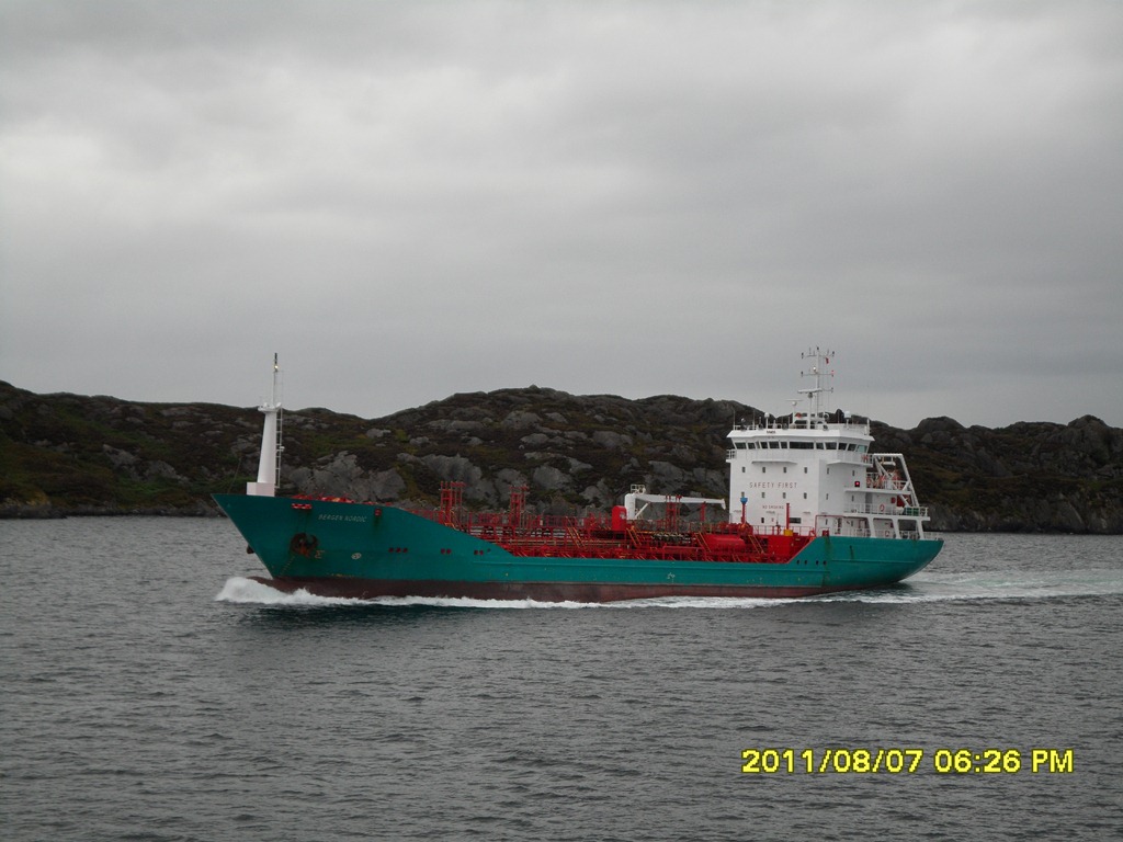 02:00 Kommer på vakt när vi passerar Fedje. Fortsätter mot Mongstad men får besked att vår last inte är klar ännu så vi skall ankra.