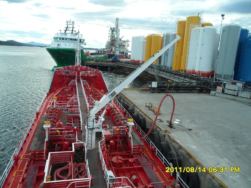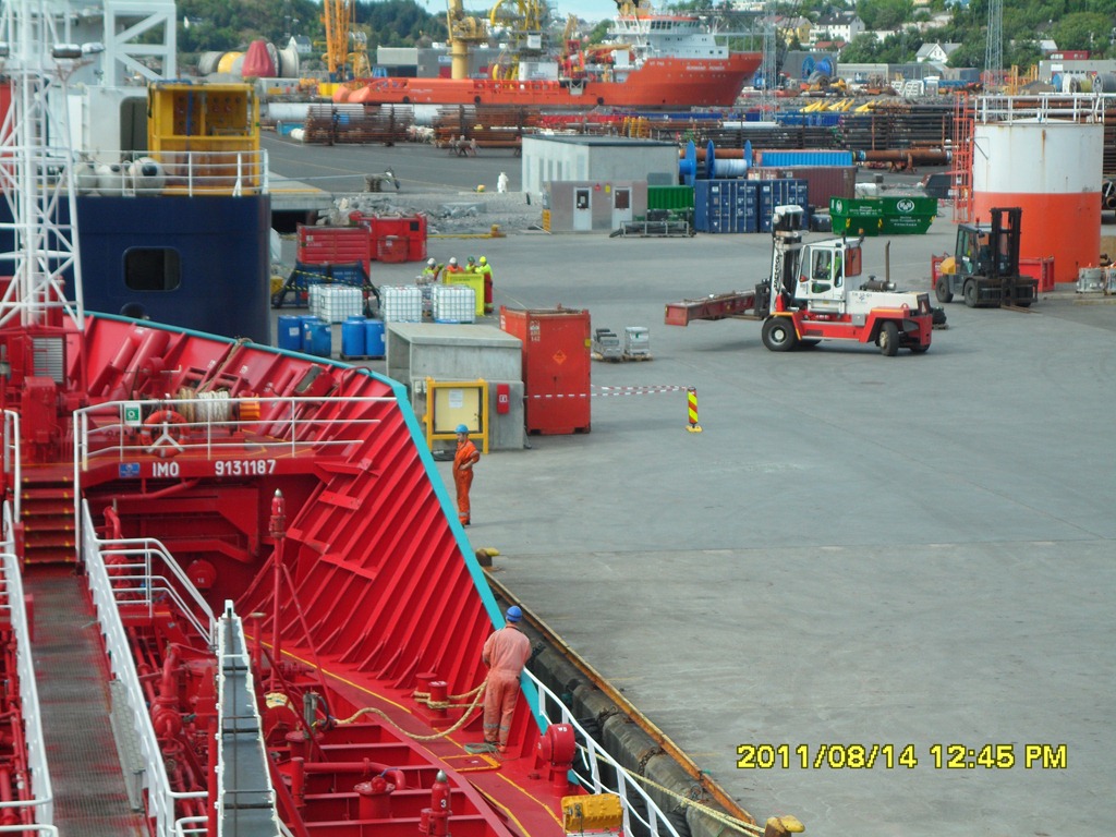 17:30-17:45 Förhalar till kajen där vi skall lossa och sätter igång med lossningen.