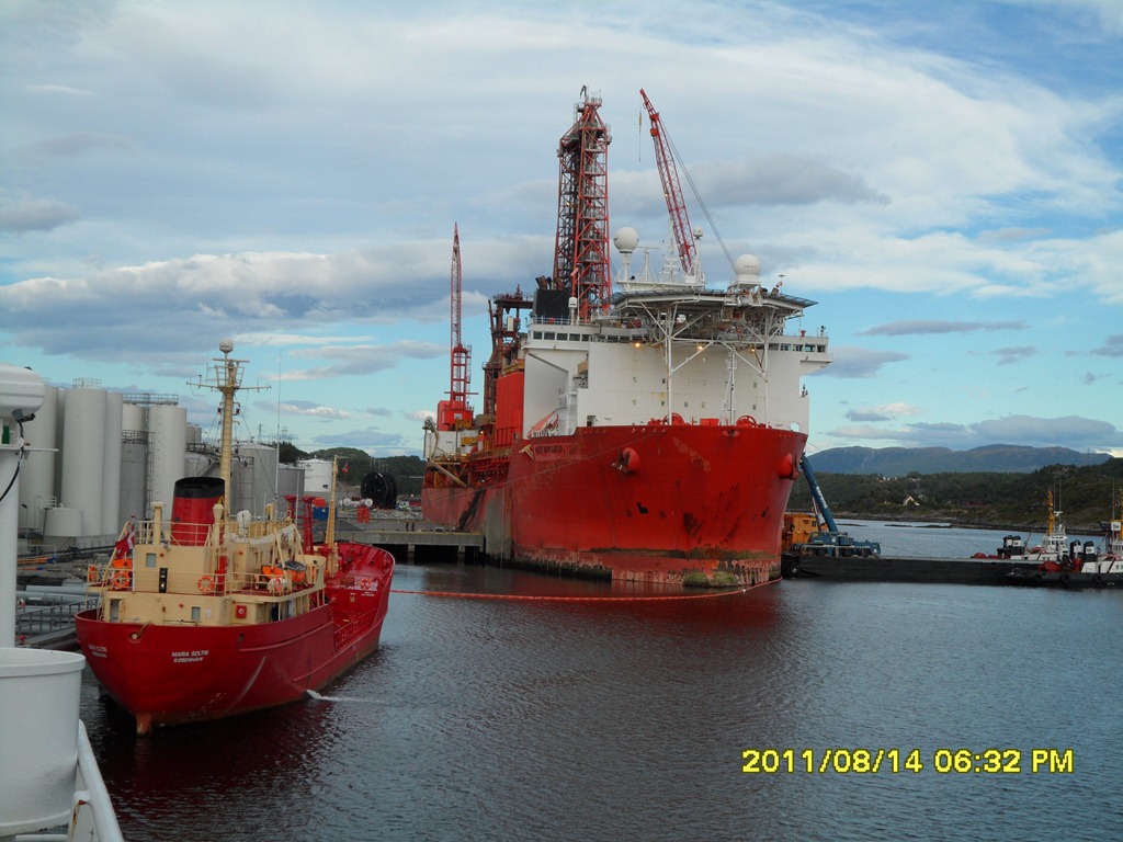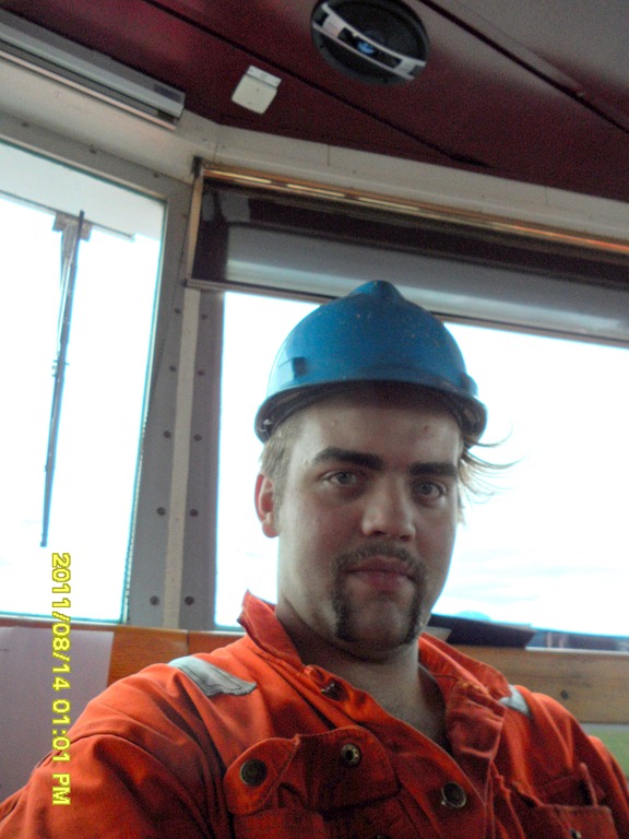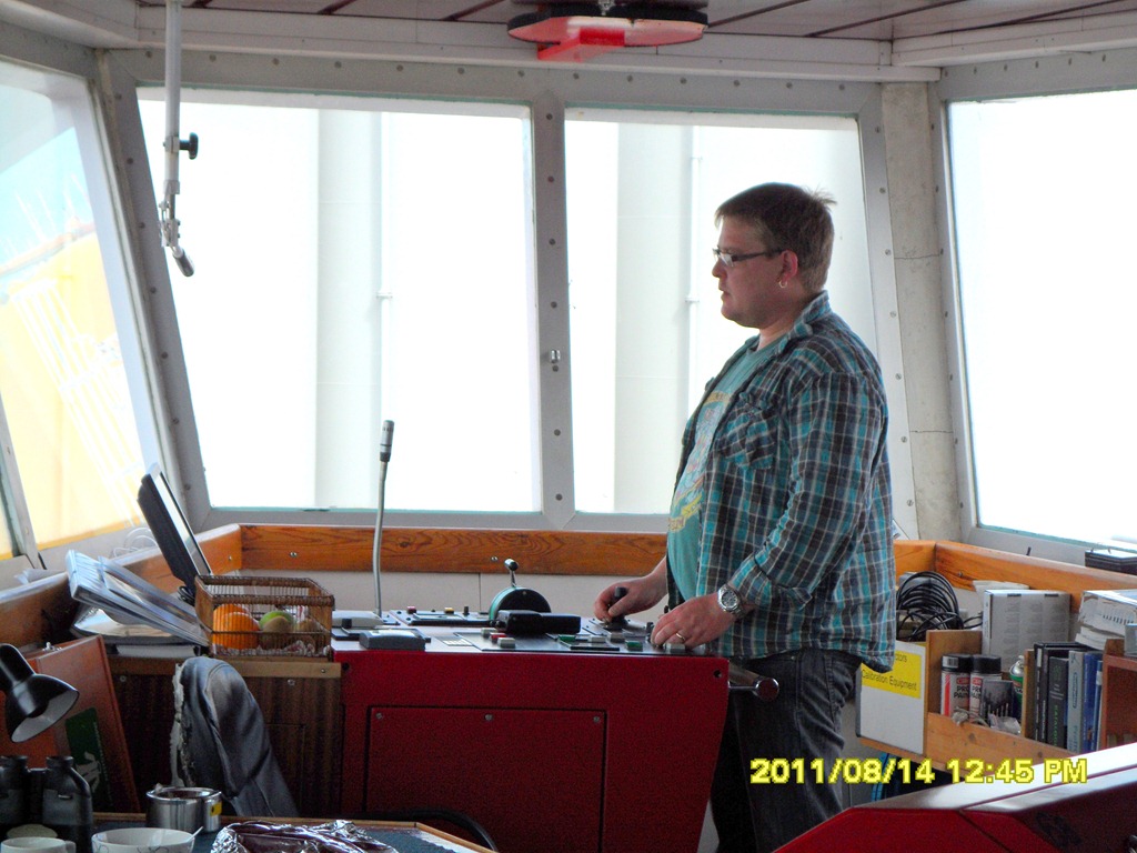 12:30 Vaknar och går upp på bryggan eftersom vi hade bestämt att ha lite övningar idag. De är då på väg att gå till väntekaj i Kristiansand.