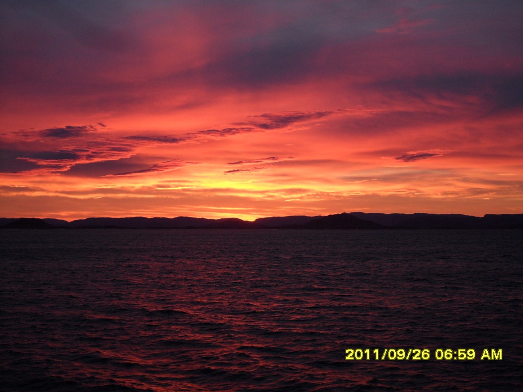 02:00 Kommer på vakt en bit söder om Brönnöysund och fortsätter ner mot Rörvik och vidare ut på Folda. Det blåser lite men det är sydostlig vind så vi fortsätter ute på Folda.