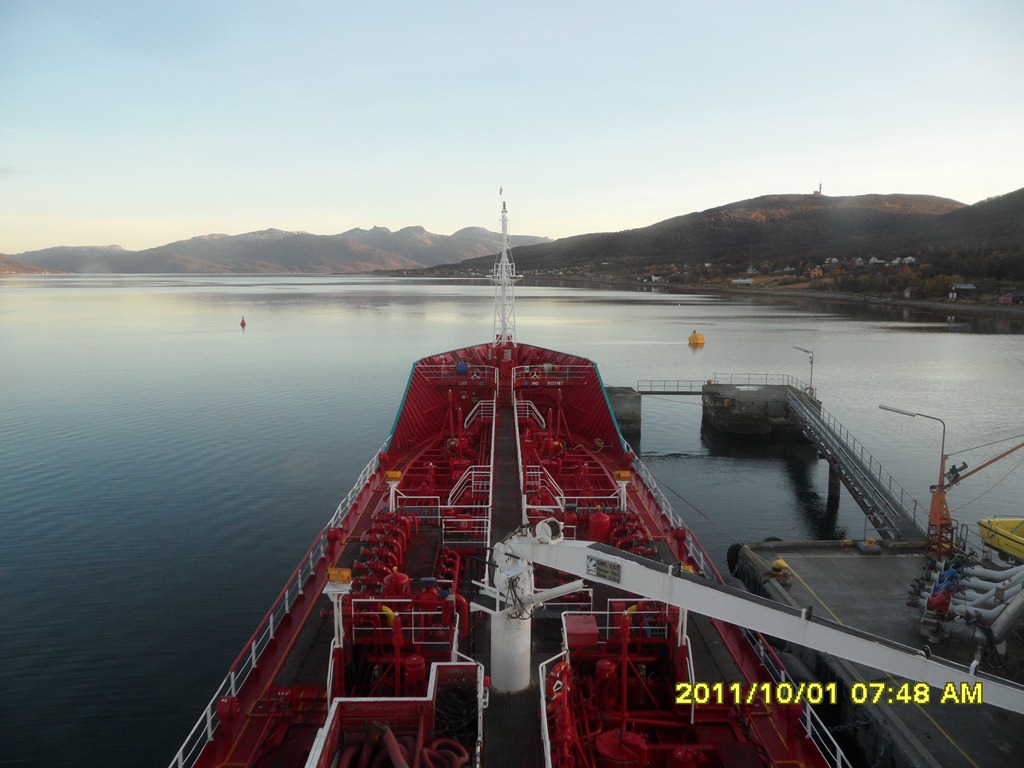 01:30 Förtöjda på Skjelnan i Tromsö för lossning.