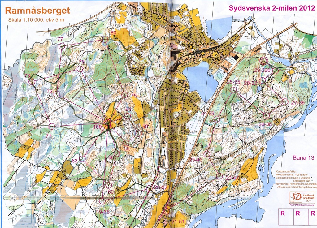 Jag och Britta skulle starta samtidigt i våra klasser H40 och D40. Britta’s bana var 10 km och min 14 km. Vi skulle springa flera slingor där man var inne vid startplatsen mellan varje slinga för att sedan ge sig ut på en sista slinga som gick ända till mål. Jag hade 4 slingor och sedan en avslutande slinga. Orienteringen gick jättebra men det var jobbigt att springa över alla hyggen och sankmarker. Så när jag gav mig ut på slutslingan så började jag bli riktigt trött. När jag skulle korsa järnvägen så kom Britta och vi märkte att vi skulle ha samma kontroller de närmaste 3. Så vi slog följe eftersom jag kände att jag inte hade kraft att hänga med den H40 killen som kom ikapp mig. Vi hade därmed följe några kontroller innan jag gav mig iväg på min lite längre runda. Det var några rejäla backar i slutet som verkligen tog ut de sista krafterna ur mig. Men jag sprang i mål på tiden 2:53:53 och hade då sprungit 17,5 km. Sen fick jag stappla tillbaka till omklädningen där jag tog en dusch innan vi åkte hem.