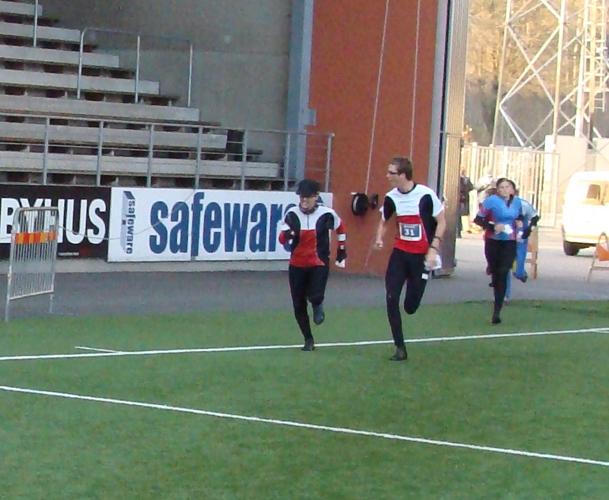 När familjen kom hem från skola och jobb så åkte vi mot Borås för att vara med på en 3 dagars tävling som heter O-event. Ikväll skulle vi springa Natt sprint vid Borås arena. Elin skulle åka med OK Torfinn ifrån Örkelljunga. Så då slapp jag åka ner och hämta henne. Vi kom fram till Borås och checkade in på Hotell Sköna nätter. Efter att ha ätit lite grillade revben så åkte vi in till Borås Arena. Det var kallt men jättefint väder och hela TC var inne på Borås arena. Jag hade första starten tillsammans med Elin. Men hon har fortfarande känningar av knät sedan Hylte 2 mil och dessutom har hon en förkylning på gång. Så hon skulle bara gå sin bana.