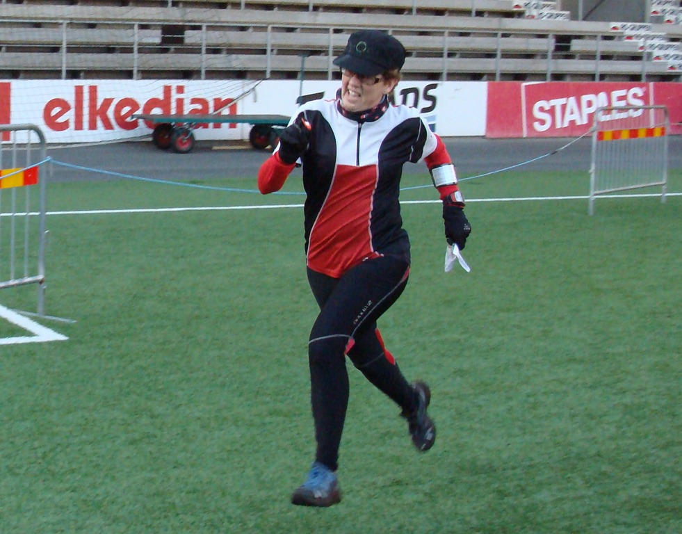 Även Britta gjorde en bom idag och var definitivt inte nöjd med sitt lopp.