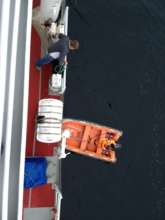 14:00 Kommer på vakt efter att ha ätit Får i Kål. Strax efter så sjösätter vi MOB båten för att köra iland och byta kock.