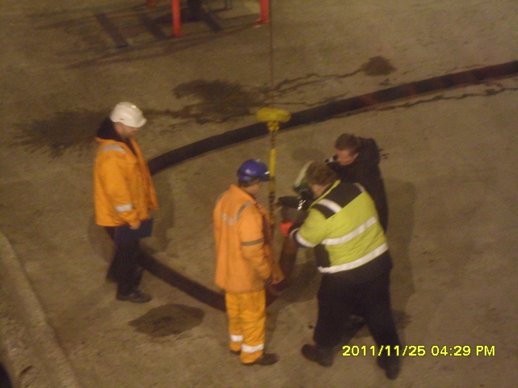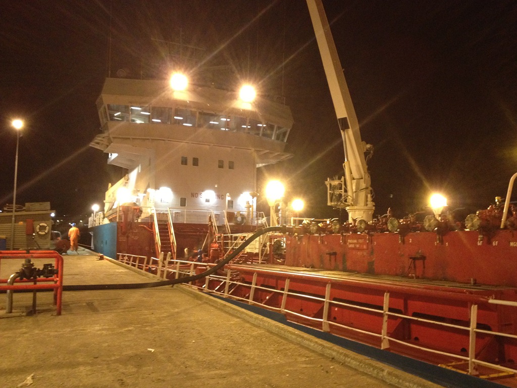 16:05 Förtöjda vid Bunkeroil i Tromsö för lossning. Skall tydligen färga dieseln så de gör på sitt egna sätt.