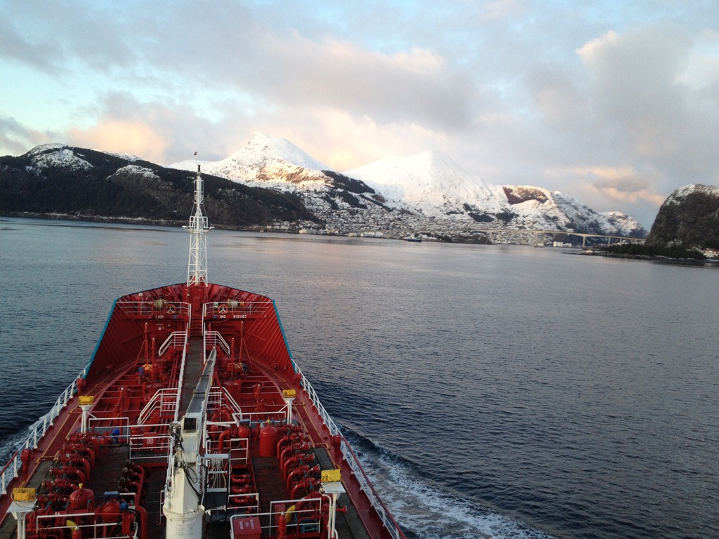 07:00 Färdig lastade och avgår från Mongstad. Vinga safir ligger och väntar på att få vår kajplats.