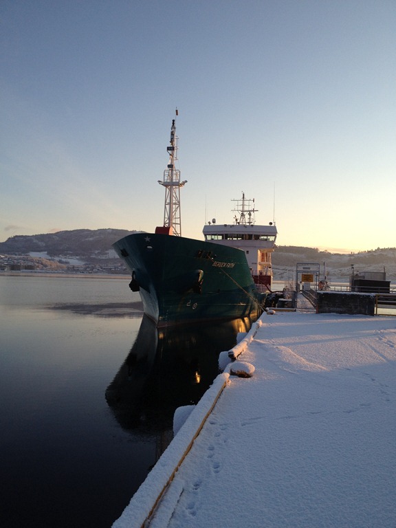 11:50 Förtöjda i Steinkjer för lossning.