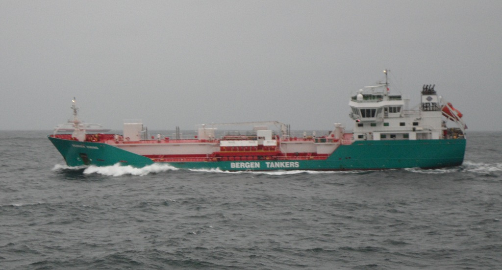 12:00 Vaknar när vi kommit ut på Hustadvika och det börjar rulla lite lätt. Vi möter Bergen Viking.